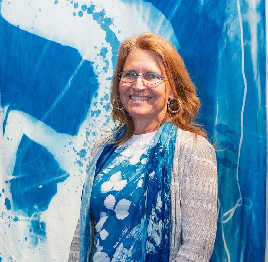 Carol Schrader’s artistic practice explores connections between mythology, dream, and contemporary issues. Using cyanotype, painting, sculpture, fiber arts, and ritual she investigates archetypes such as the Muse, Persephone, and La Guadalupana as they intersect with women’s roles. Ships become the symbol for safety in the face of the fire of climate change. The repetitive practice of sewing is ritualistic and architectural.in her mixed-media installations.