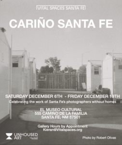 Cariño Santa Fe is a photographic love letter to all of the shining souls that create our community. Each image is captured in black and white by artists in Santa Fe without homes. This project included seven shelters and over 40 participants. All work is for sale with all proceeds going directly back to each artist.